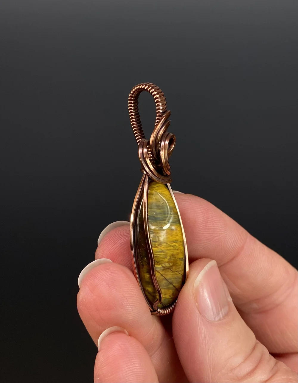 Golden Tiger Eye pendant copper wire wrapped Very well made.