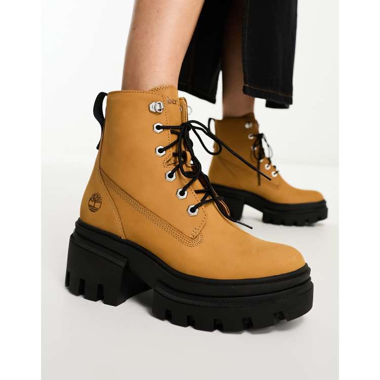 Timberland everleigh 6 inch lace up chunky boots in wheat nubuck leather Very well made.