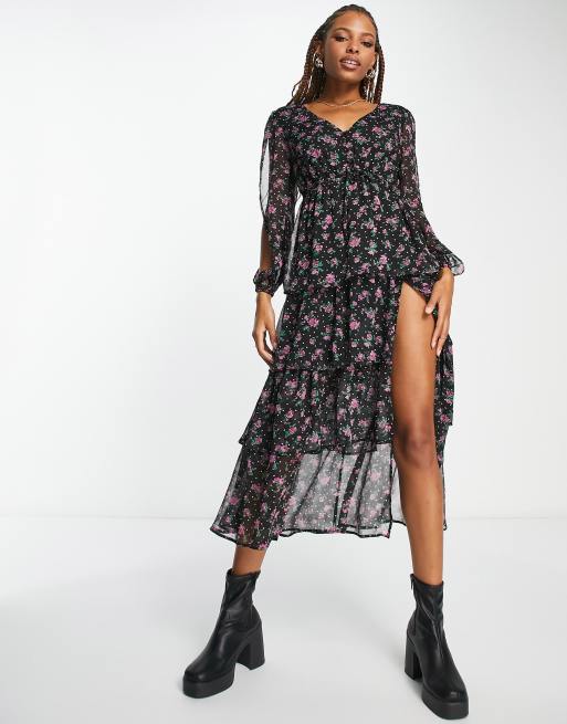 Quiz Blue Multi Chiffon Floral Wrap Tiered Maxi Dress Very well made.