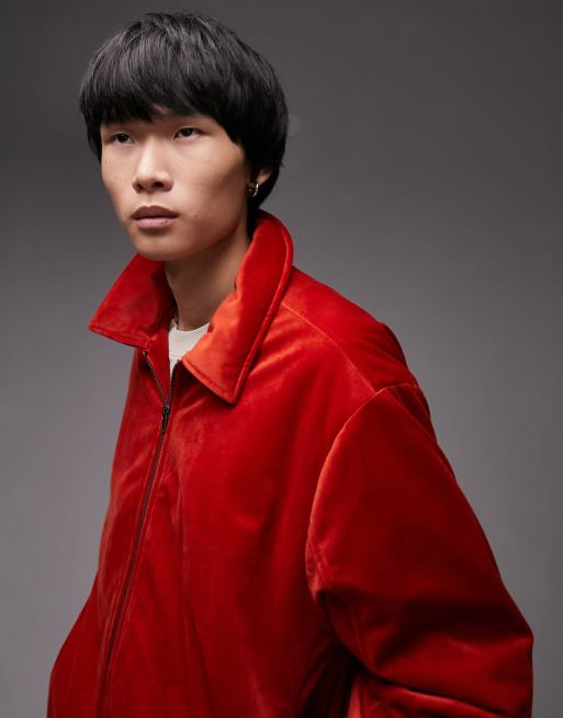 Topman velvet varsity bomber jacket in burgundy Very well made.