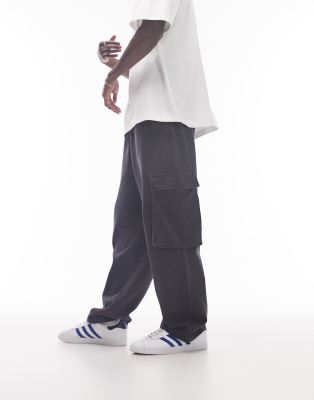 Topman Straight Leg Cargo Sweatpants In Washed Black ModeSens Very well made.