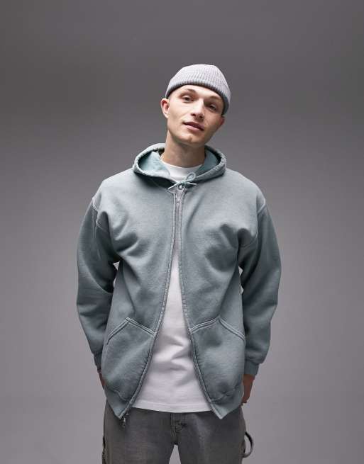 Topman oversized full zip hoodie in washed sage Very well made.