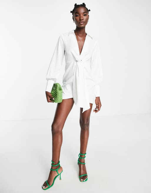 Topshop twist front mini satin shirt dress in white ASOS Very well made.