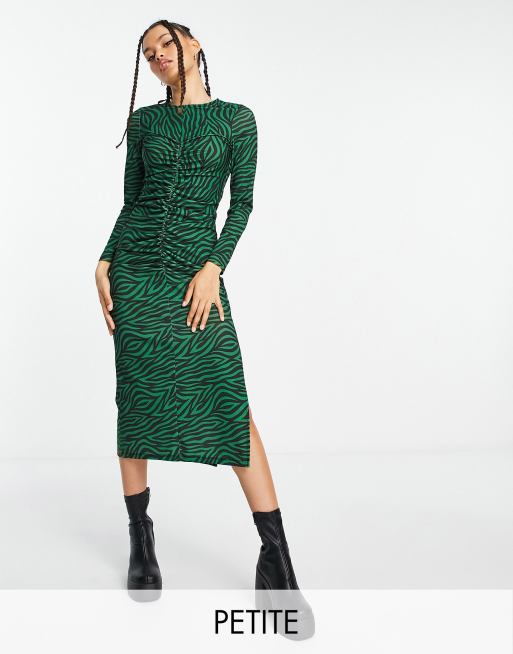 New Look Petite ruched front long sleeve midi dress in green pattern Very well made.