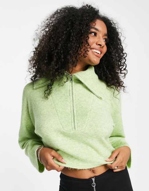 Topshop knitted crop jumper with zip up funnel in green Very well made.