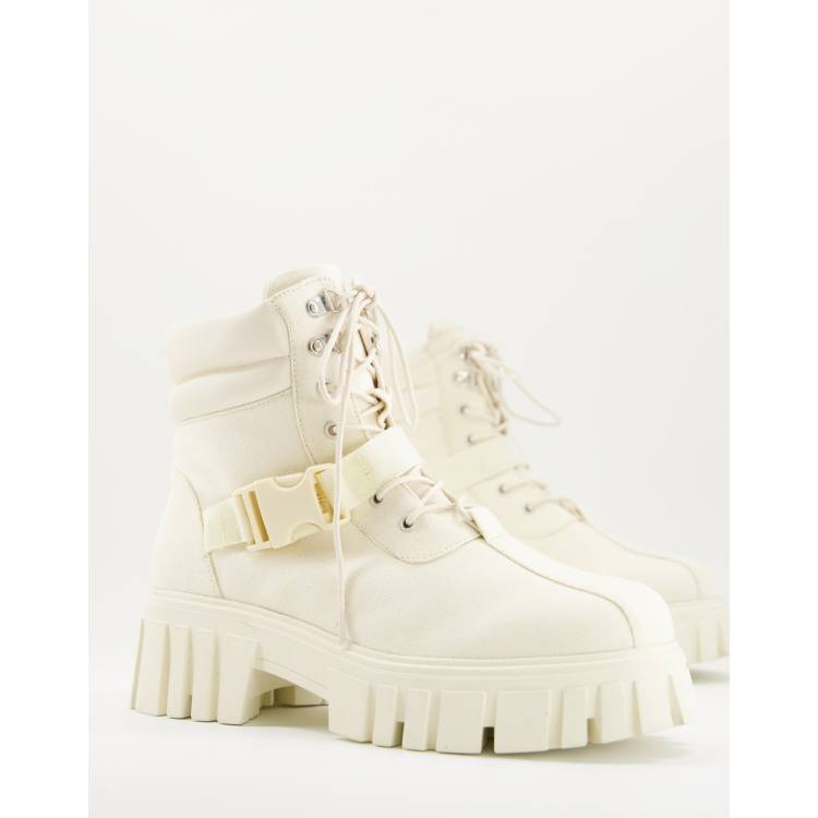 Public Desire man kash lace up buckle hiker boots in cream Very well made.