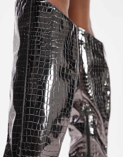 Topshop Milo thigh high metal heel boot in pewter Very well made.