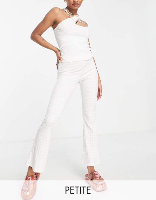 Topshop Petite co ord ribbed stripe flared trouser in ecru Very well made.