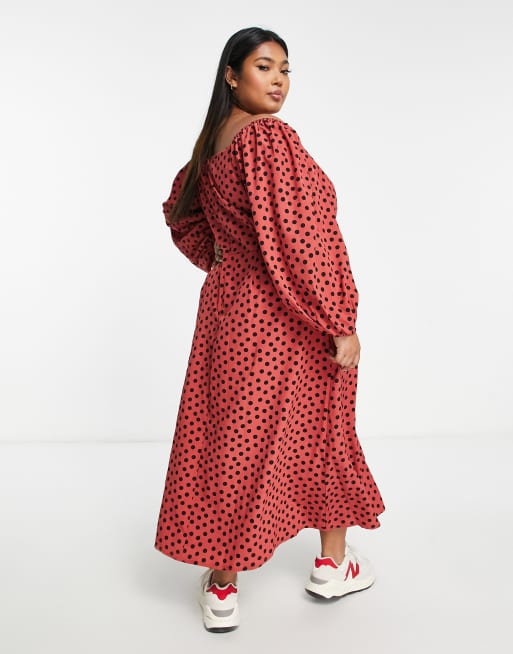 River Island Plus cut out neck maxi dress in rust polka dot Very well made.