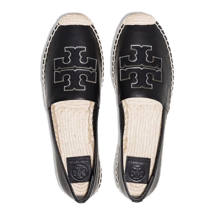 NIB Tory Burch Ines Espadrille Leather Flat BLACK Silver US 9.5 Very well made.