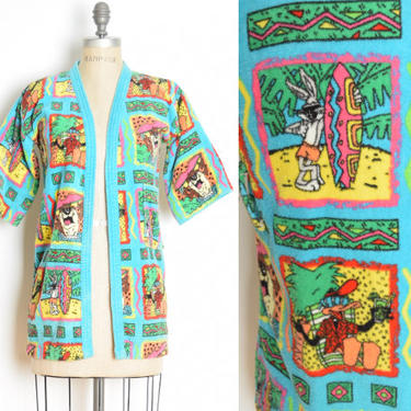 vintage 90s towel swim jacket LOONEY TUNES print terry cloth Very well made.