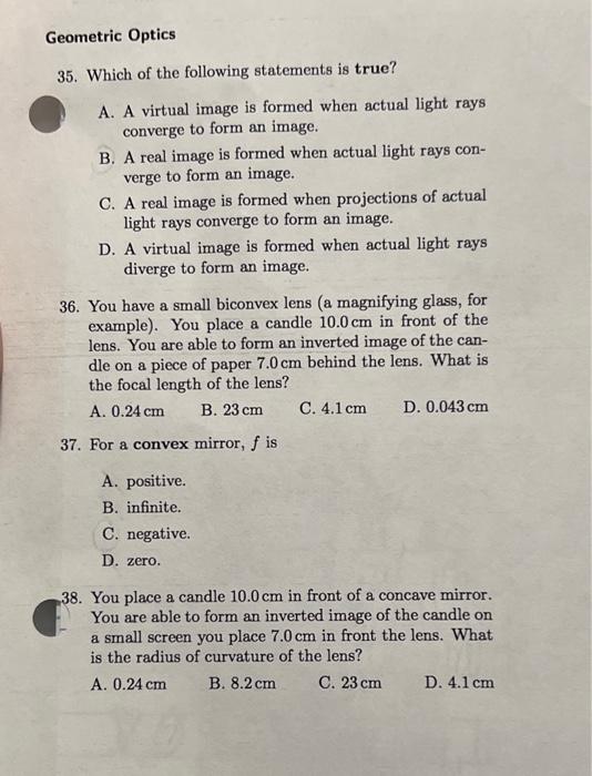Solved Geometric Optics 35. Which of the following Chegg Very well made.