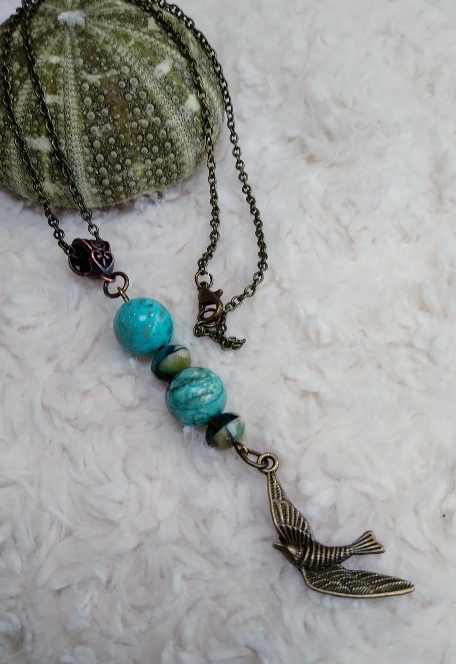 Teardrop Beaded Turquoise Agate Chakra Necklace Egret Jewellery Very well made.