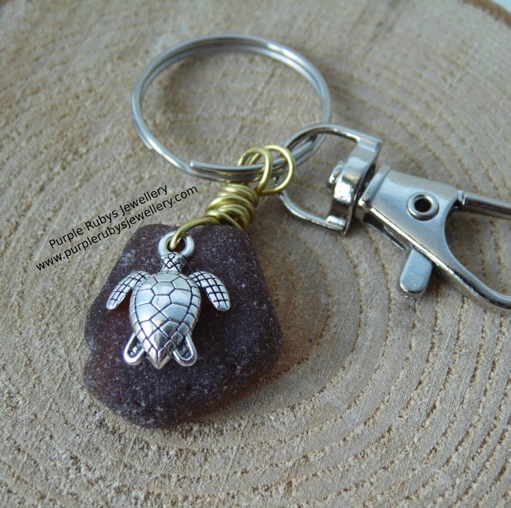 Amber Sea Glass with Turtle Bag Charm Key Ring Folksy Very well made.