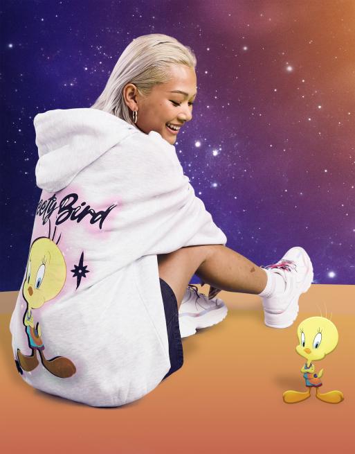ASOS DESIGN Space Jam A New Legacy oversized hoodie with Tweety back print in ice marl Very well made.