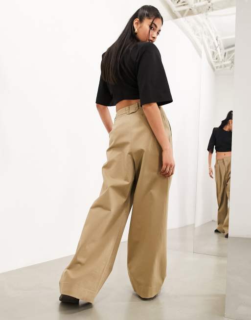 ASOS EDITION relaxed cotton twill wide leg trouser in stone Very well made.