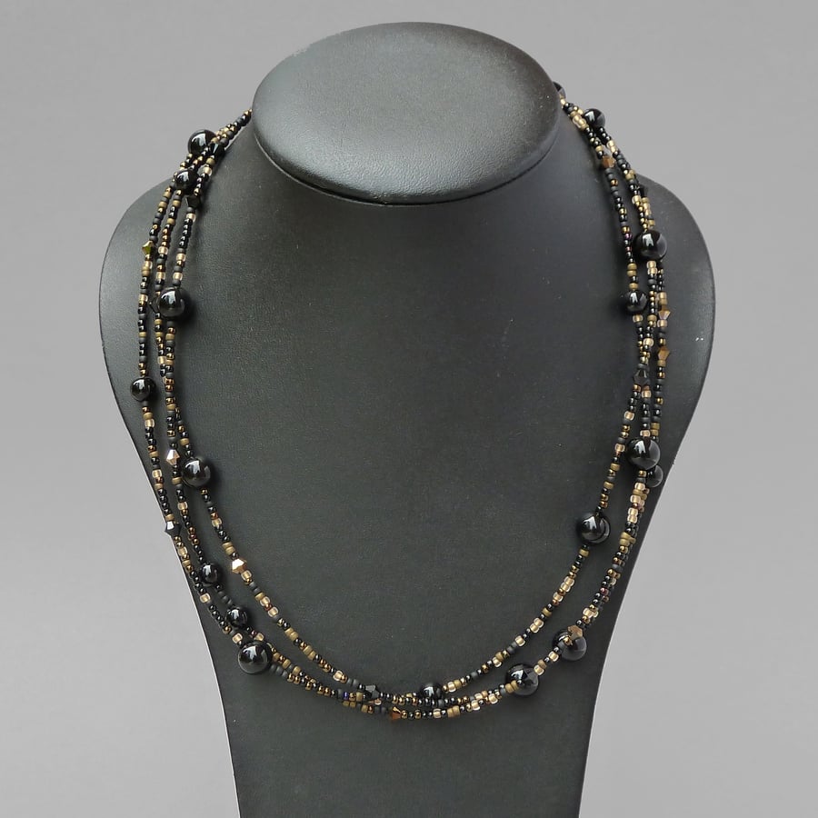 Multi Strand Faux Pearl Necklace Cream Black Gold Runway Statement Twisted Very well made.
