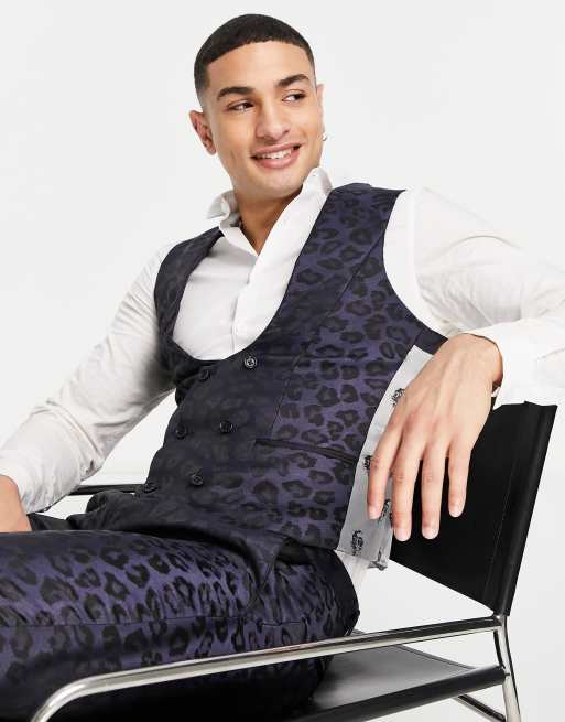 Twisted Tailor waistcoat in navy leopard jacquard design Very well made.