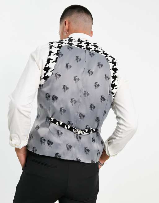 Twisted Tailor waistcoat in white with oversized houndstooth design Very well made.