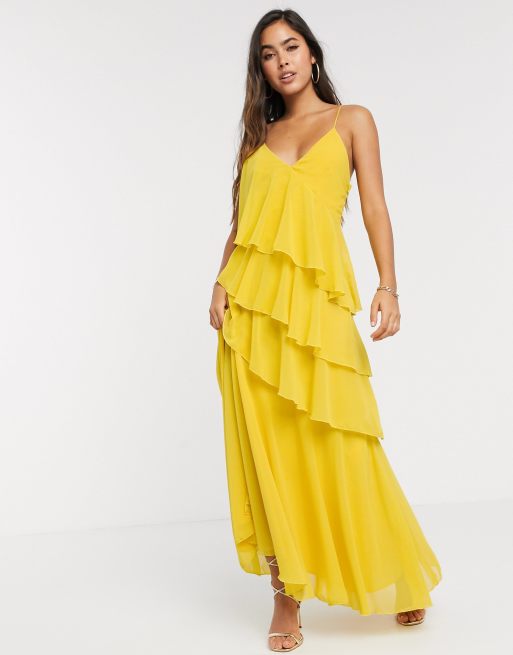 Forever U Collection ruffle maxi cami dress with thigh split in yellow Very well made.