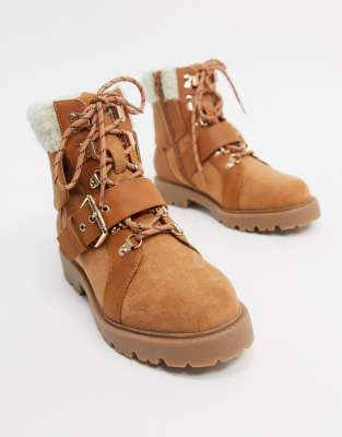 ASOS DESIGN Wide Fit Belle faux fur lace up boots in tan ASOS Very well made.