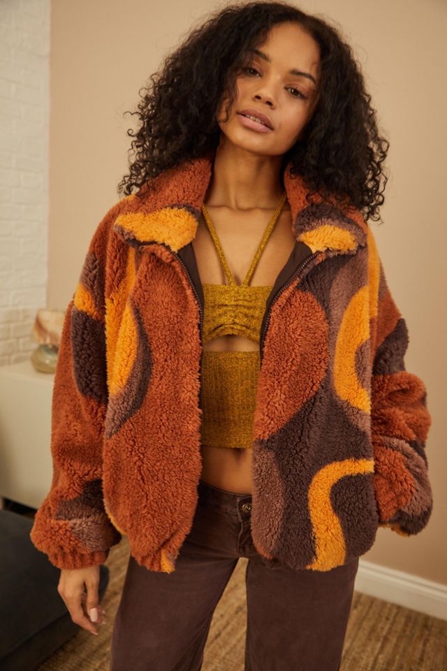UO Olivia 70s Wave Print Sherpa Jacket Urban Outfitters Very well made.