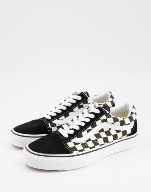Vans Old Skool checkerboard trainers in white and black Very well made.