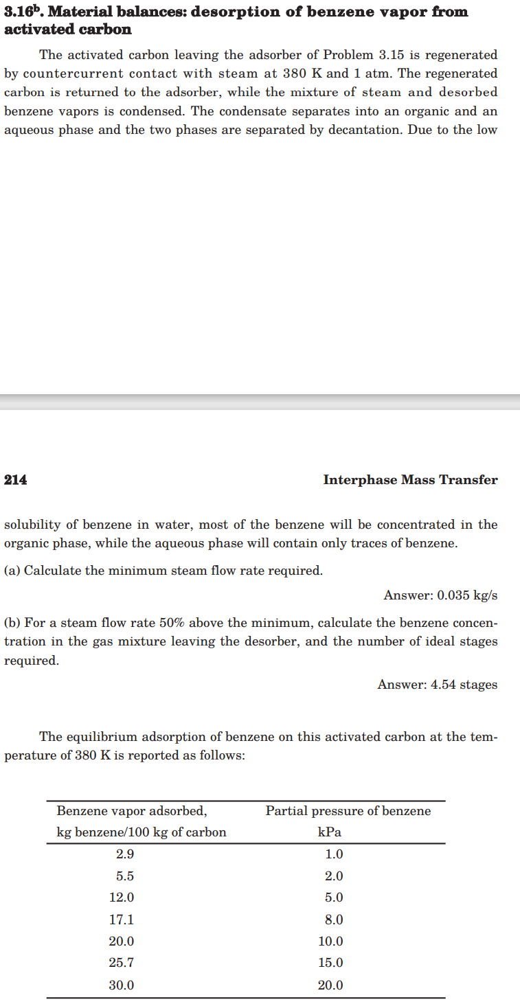 Solved 3.16b. Material balances desorption of benzene vapor Very well made.