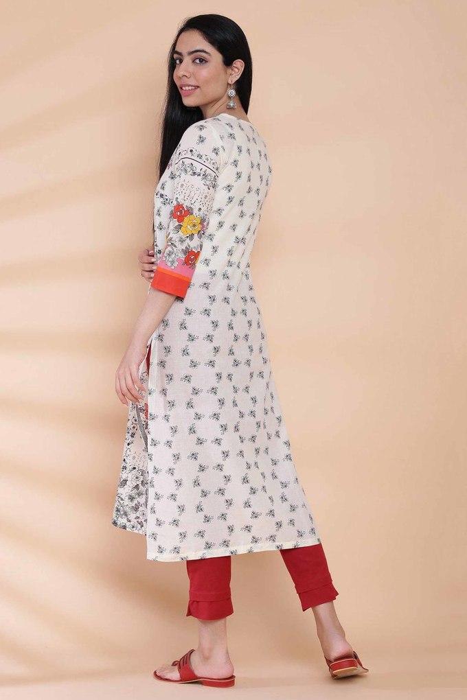 Buy BIBA Cream Printed V Neck Straight Fit Womens Kurti Very well made.
