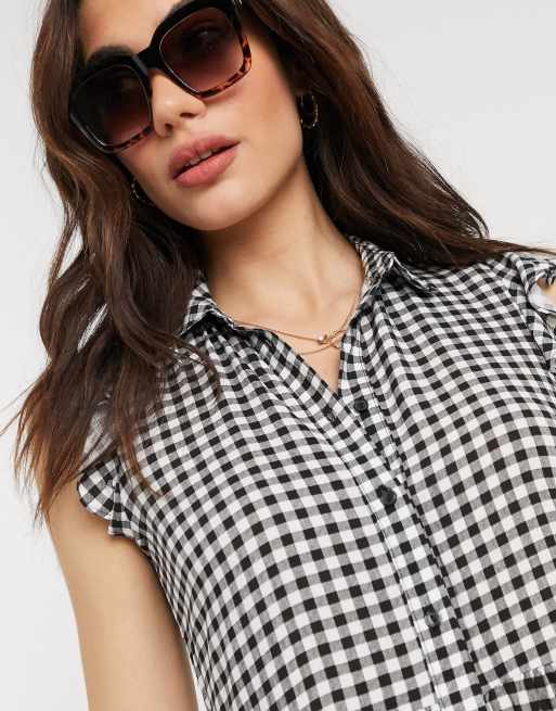 Stradivarius Vestito camicia senza maniche a quadretti bianchi e Very well made.