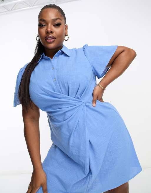 Simply Be Vestito camicia effetto lino con nodo laterale blu Very well made.