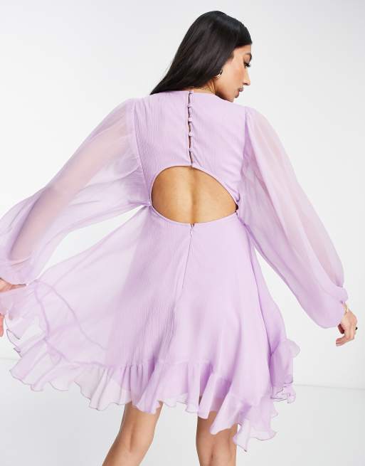 ASOS DESIGN button detail mini dress with blouson sleeve in lilac Very well made.