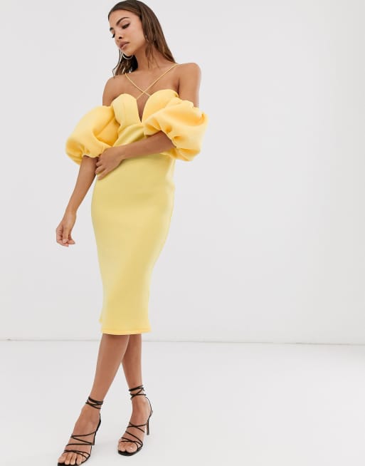 ASOS DESIGN bardot bubble sleeve strappy midi dress ASOS Very well made.