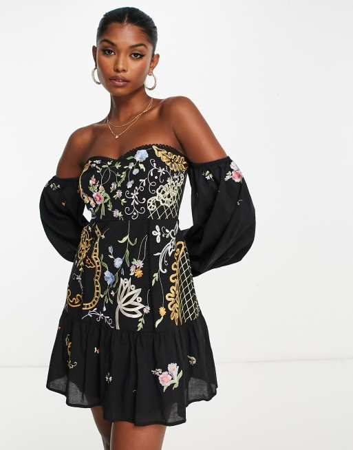 ASOS DESIGN Vestito corto rosa a pois con scollo alla Bardot e maniche a sbuffo Very well made.