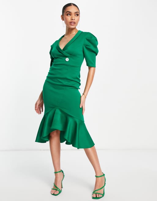 ASOS DESIGN Vestito midi verde stile smoking con maniche a sbuffo Very well made.