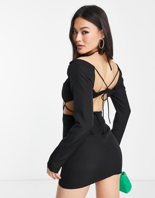 tubino attillato nero con maniche lunghe in tulle e collo in Very well made.
