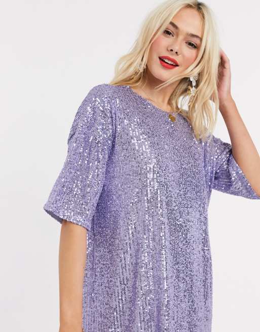 ASOS DESIGN Vestito corto a maniche corte in paillettes lilla ASOS Very well made.