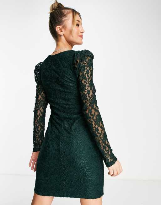 Only Poula Vestito in pizzo di jersey verde scuro con maniche Very well made.