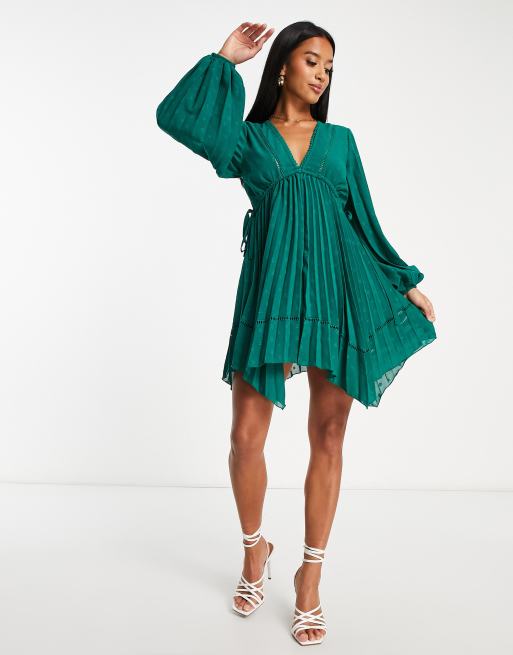 ASOS DESIGN Petite Vestito corto verde bosco plumetis a pieghe Very well made.