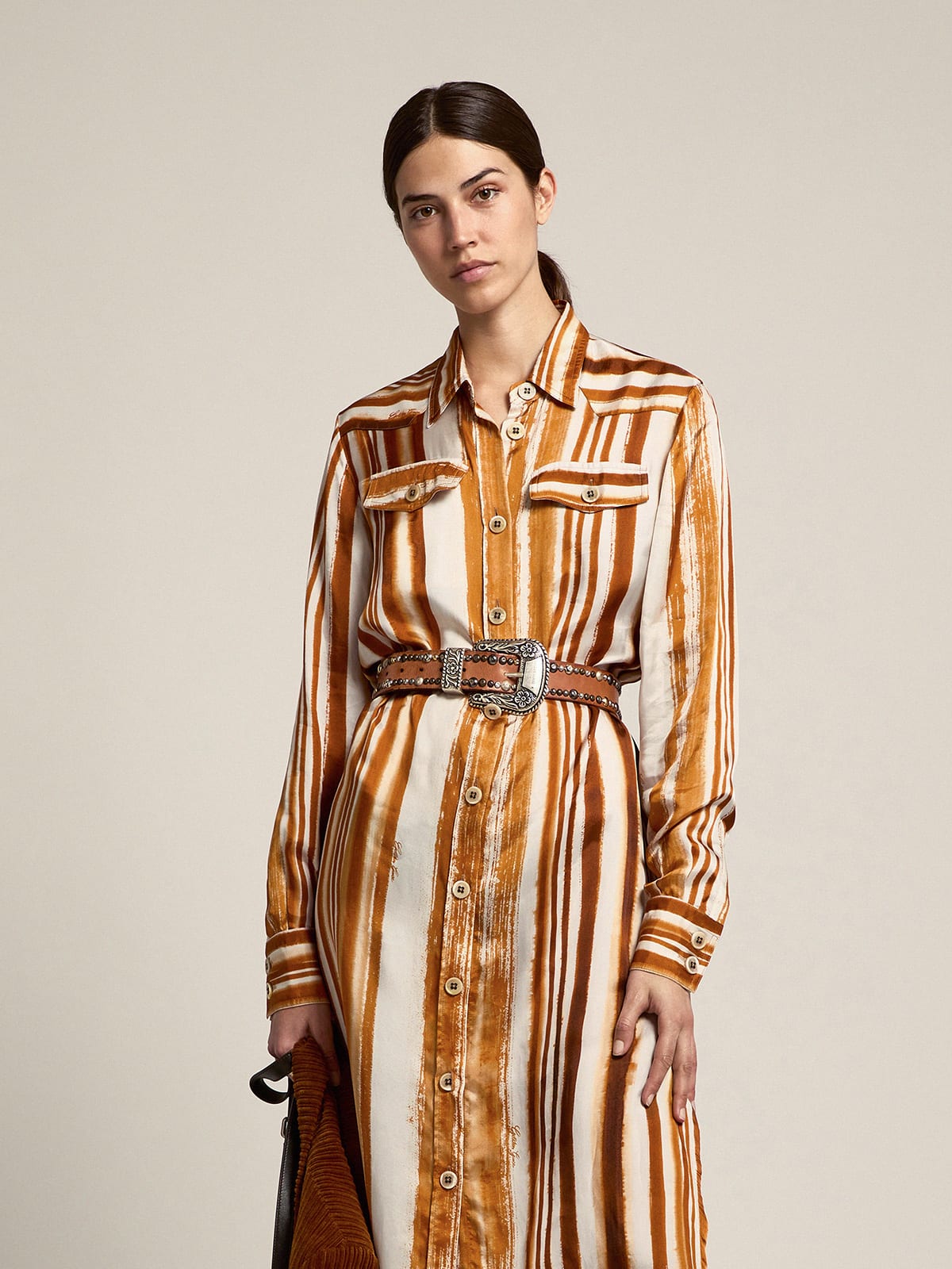 Vestito chemisier con stampa a righe verticali effetto acquarello Very well made.
