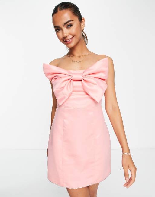 Band Of Stars Vestito corto in raso premium rosa con finiture decorate e fiocco sul davanti Very well made.