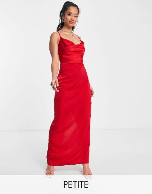 NaaNaa Petite Vestito lungo in raso rosso con scollo ad anello Very well made.