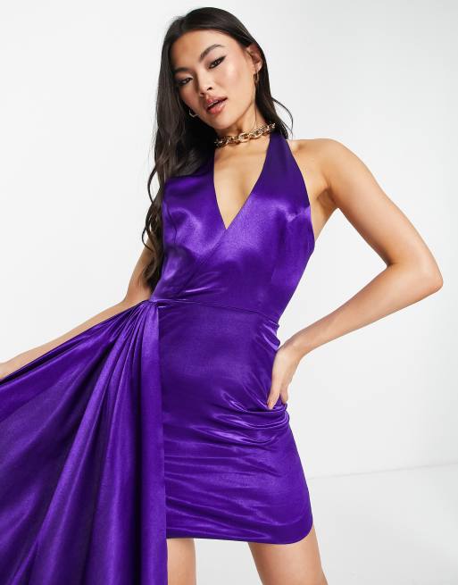Yaura plunge mini dress with train in vibrant purple ASOS Very well made.