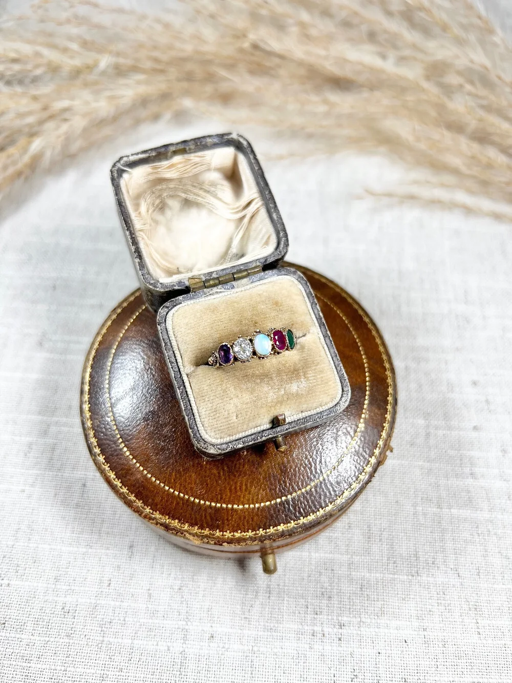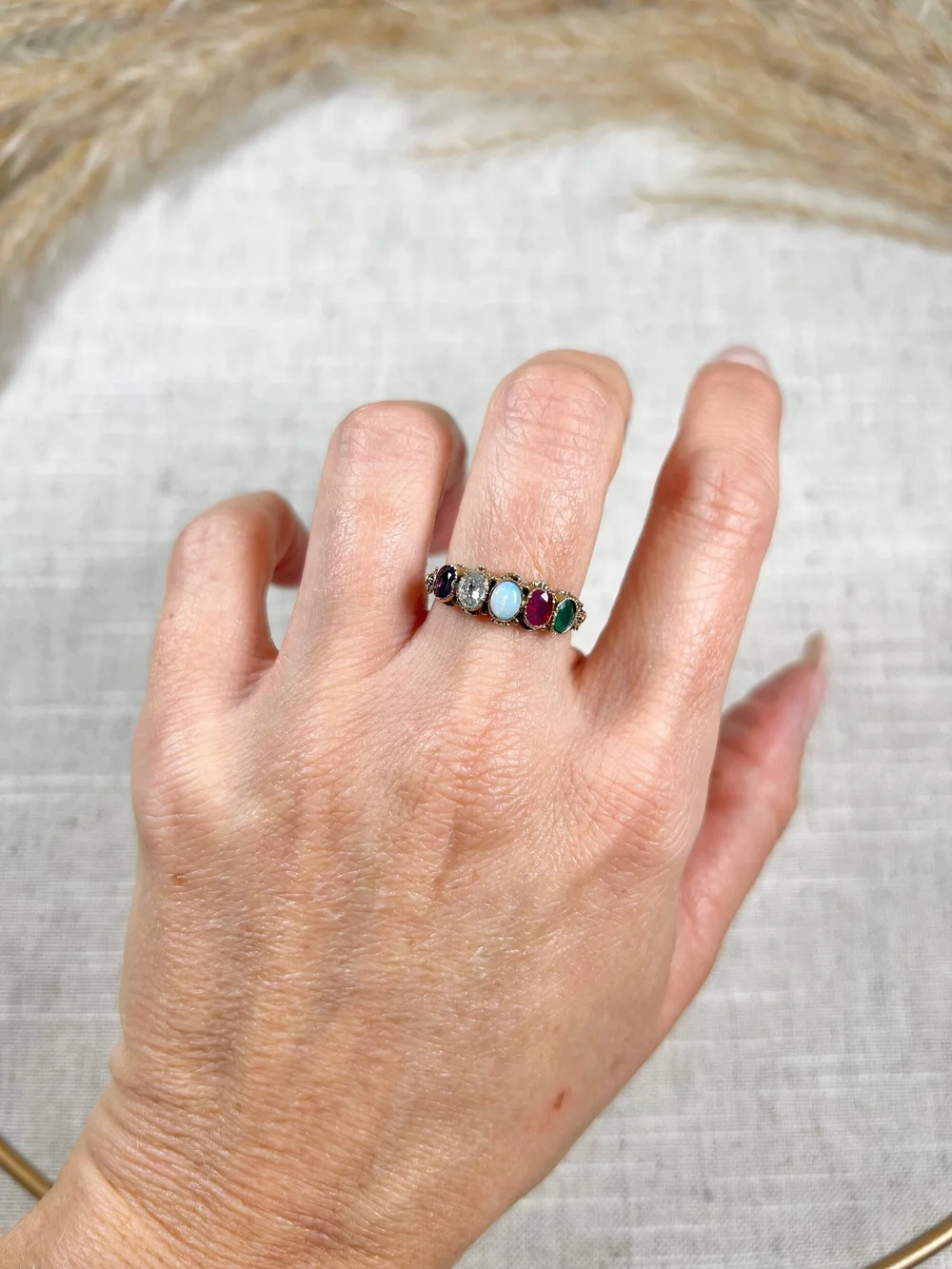Antique Victorian Gemstone Adore Ring 18 Carat Gold circa 1900 at Very well made.