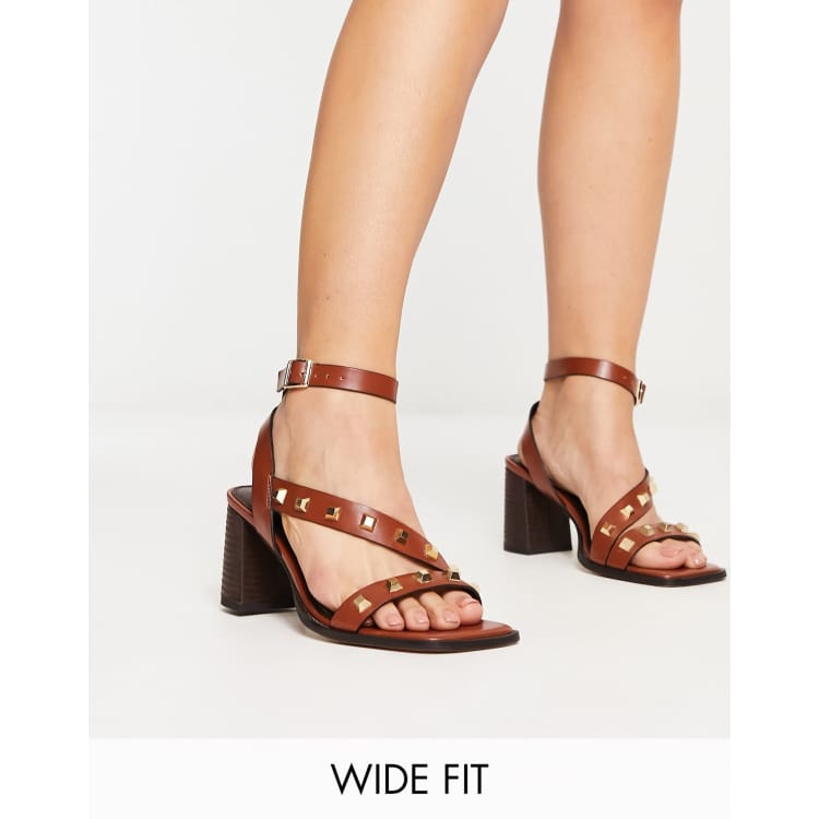 ASOS DESIGN Wide Fit Halter studded mid heeled sandals in tan ASOS Very well made.
