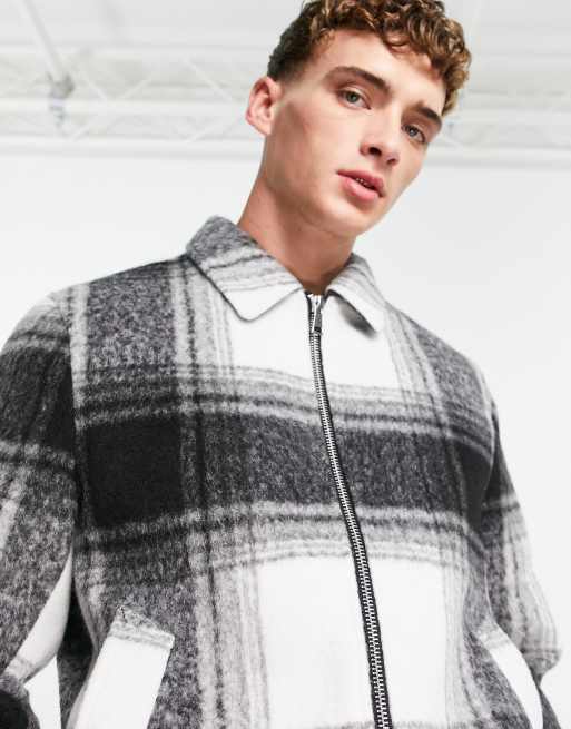 ASOS DESIGN wool look harrington jacket in black and white check Very well made.