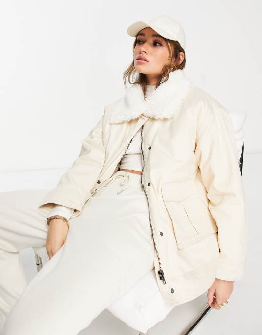 ASOS DESIGN cozy borg collared cotton puffer jacket in cream ASOS Very well made.