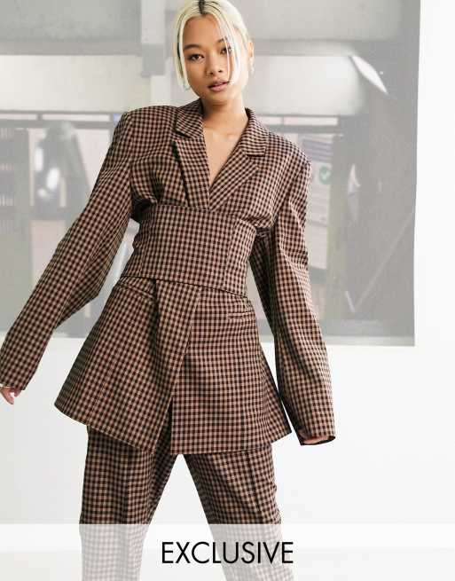 COLLUSION fitted blazer with corset waist detail in brown gingham Very well made.