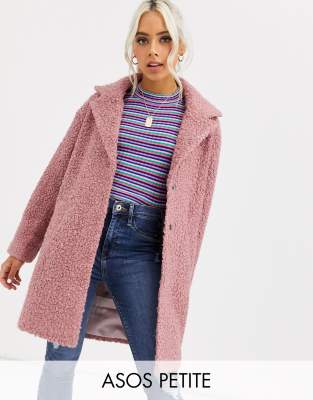 ASOS DESIGN Petite textured cocoon coat in pink ASOS Very well made.