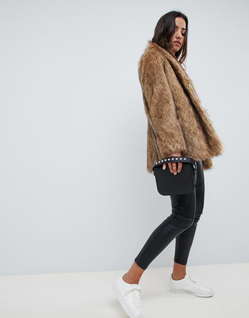 ASOS DESIGN faux fur stand collar coat in brown Abrigos Cuellos Very well made.